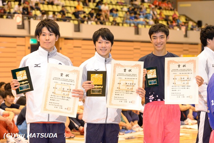 2015全日本インカレ~男子個人総合TOP3 2015.08.23 Sun Tweet 優勝:野々村笙吾(順天堂大学)、2位:萱 和磨(順天堂大学)、3位:白井健三(日本体育大学) 2015.8.22. at リージョンプラザ上越 PHOTO by 松田 優