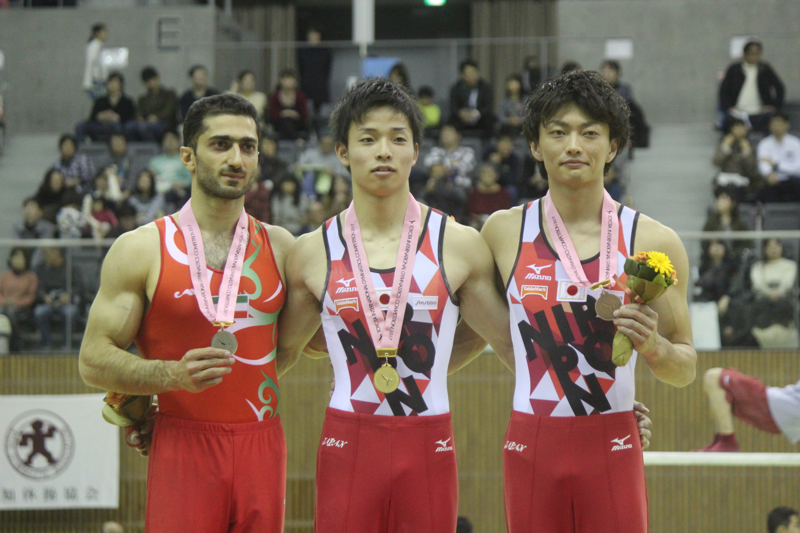 杉野正尭(鹿屋体育大学)、あん馬で金!~2017豊田国際体操 2017.12.10 Sun Tweet 左から順に2位:サイードレザ・ケイハ(IRI)、優勝:杉野正尭(JPN)、3位:亀山耕平(JPN) PHOTO:Keiko SHIINA