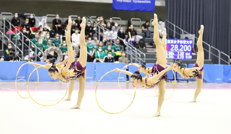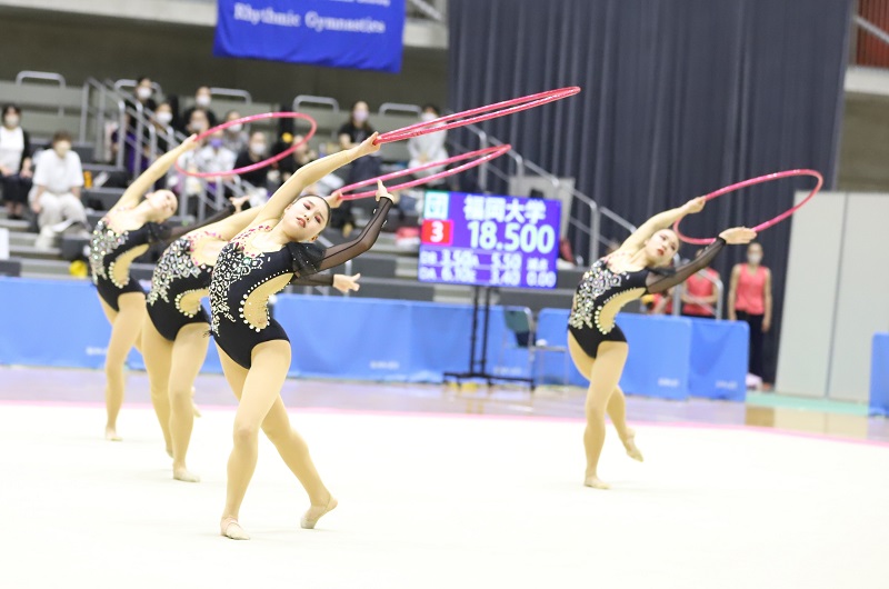 「終わってみたら総合優勝は逃していた」という印象なのが昨年の国士舘大学だ。全日本インカレでも、フープ×5では1位、リボン&ボールが3位だったため、総合優勝には届かず。全日本選手権でも種目別決勝では2種目とも制したのだが、団体総合(予選での2種目合計)は3位と、総合優勝には縁がなかった。しかし、種目別での優勝が物語っているように、決して弱かったわけではない。圧倒的な芸術性、音楽との調和を見せ、観客を惹き込む力は存分に発揮していたのが昨年の国士舘だ。東日本インカレは逆襲の序章となるか、期待したい。