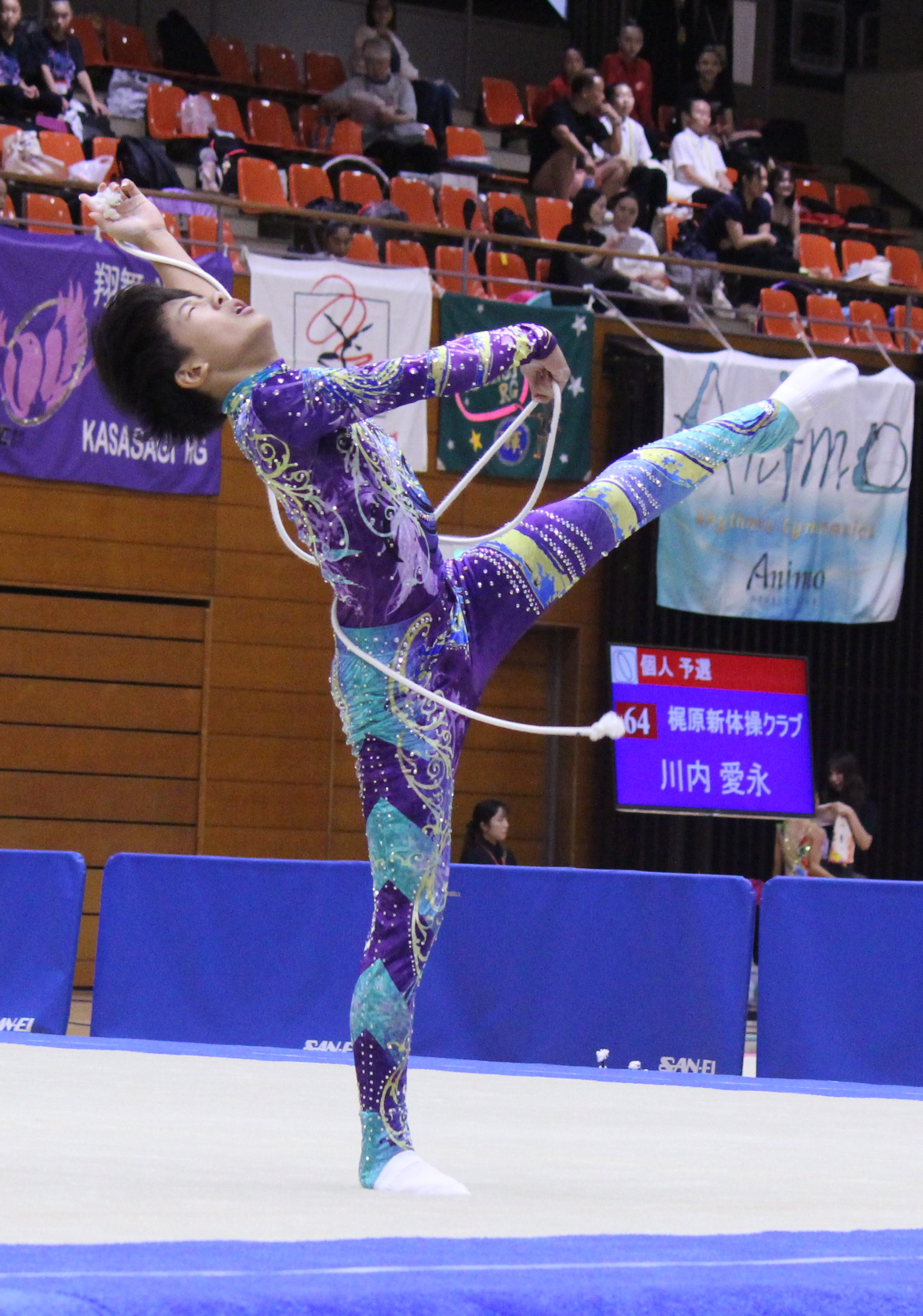 9月28日に行われた「2025かささぎ杯」の男子個人(リング・ロープの2種目)では、内川史琉(神埼ジュニア新体操クラブ)が優勝した。